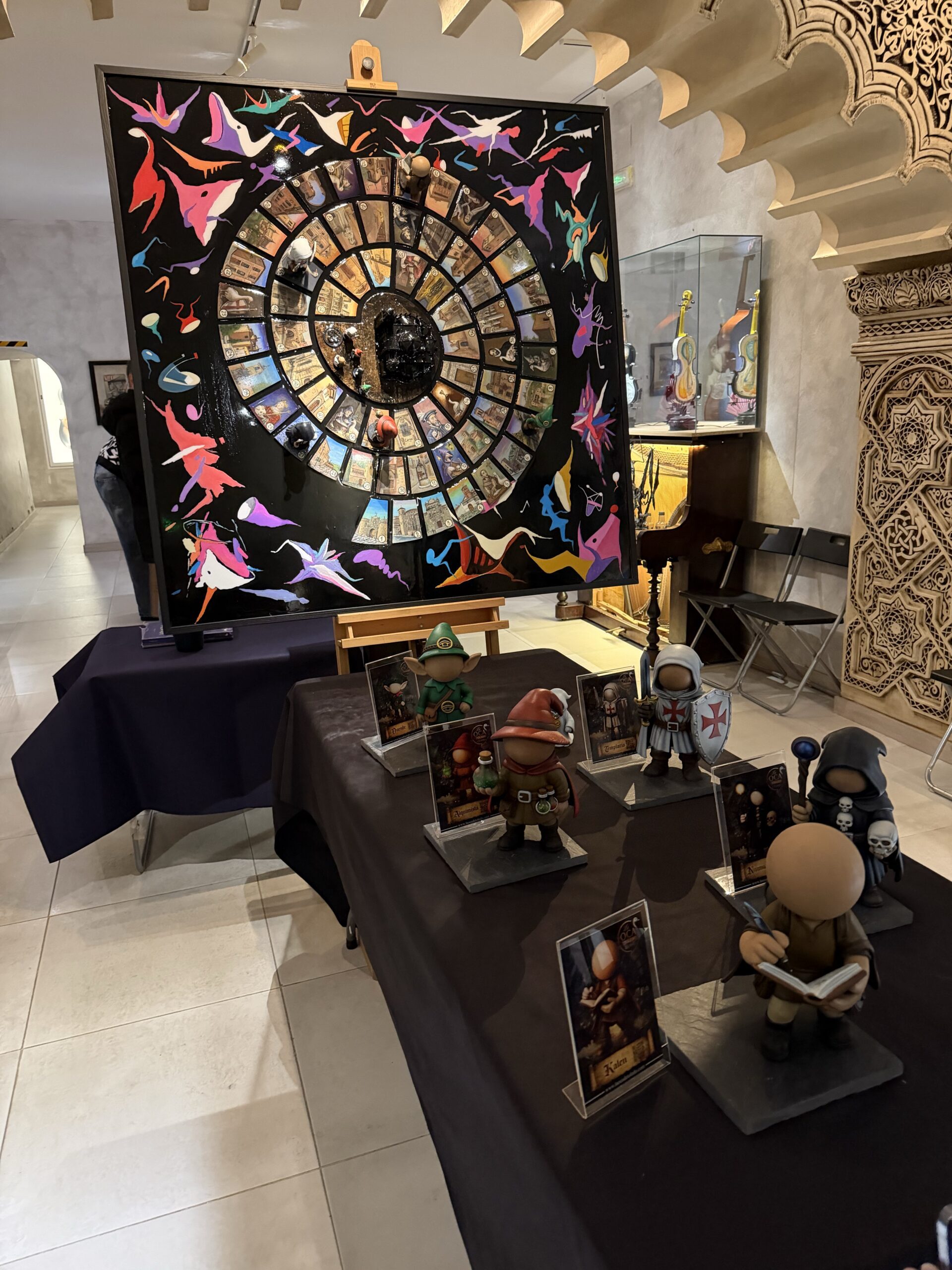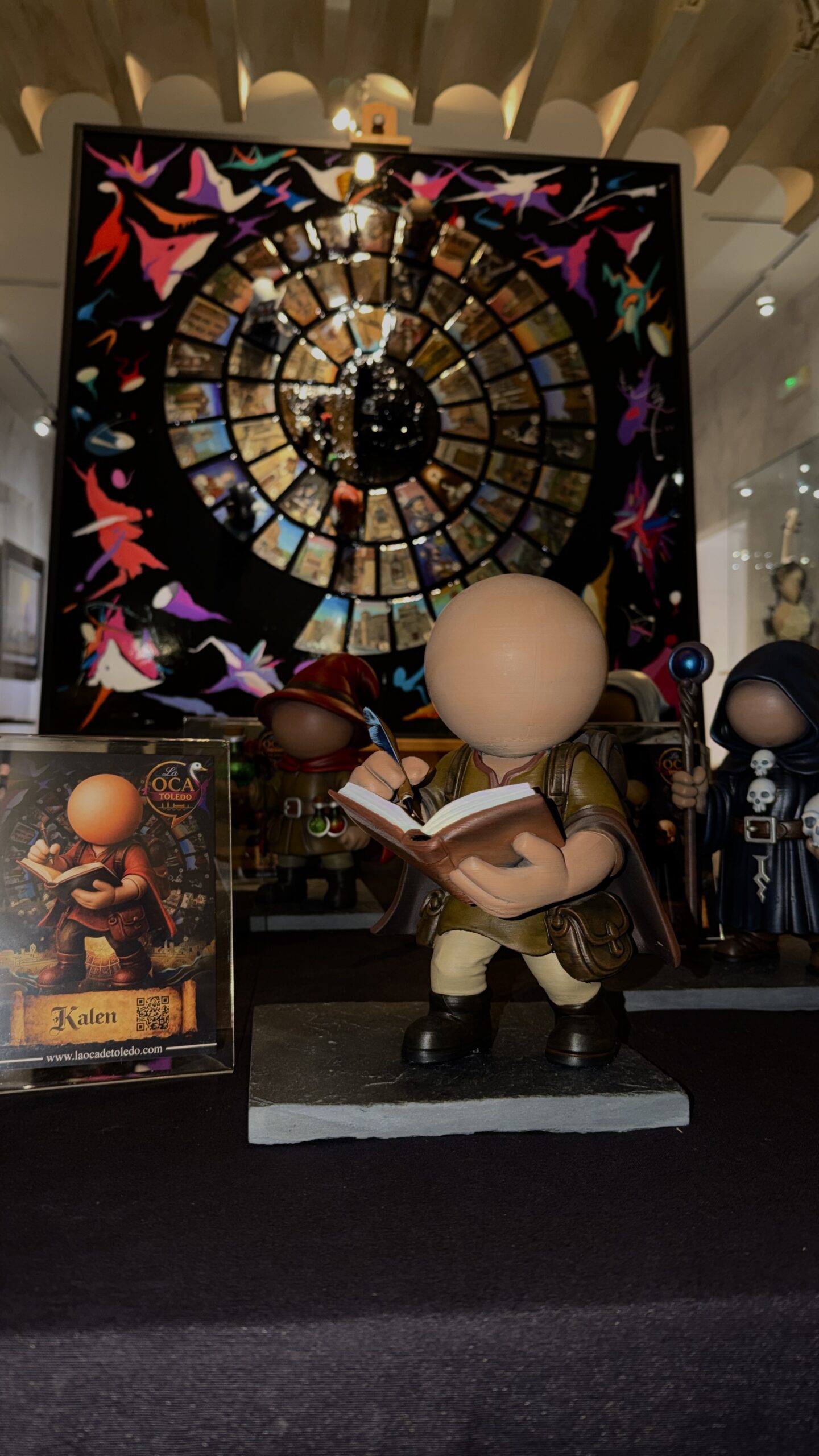 Las casillas se presentan en relieve 3D, evocando los adoquines de los caminos de Toledo, aportando textura, profundidad y carácter escultórico. Los personajes de la Oca de Toledo, incluidos en edición jugable, se integran mediante imanes de alta resistencia, asegurando estabilidad durante el juego y protegiendo la integridad de la obra.