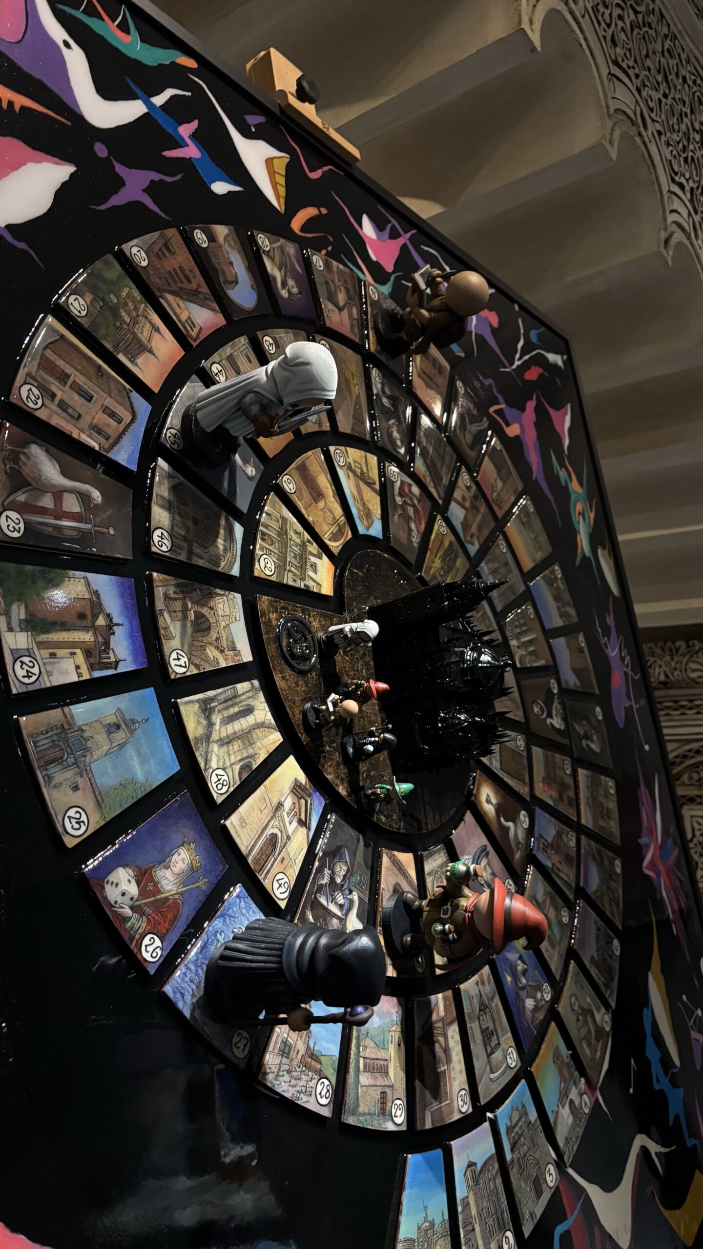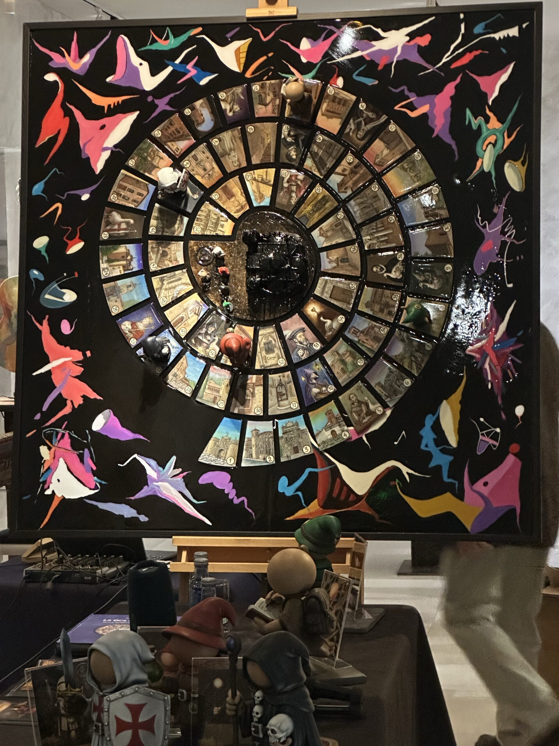 En el centro de la composición se alza la Catedral de Toledo en volumen 3D, convertida en la última casilla del recorrido, símbolo del destino final y eje narrativo de la obra.