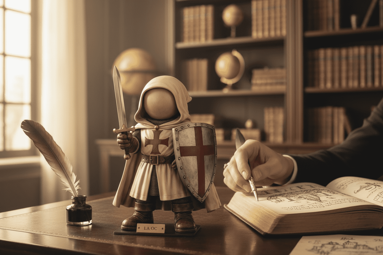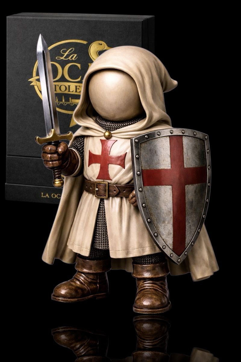 El Templario de La Oca de Toledo encarna la figura del caballero medieval cuyo juramento fue más poderoso que su espada: proteger lo sagrado y custodiar los objetos de poder ocultos en la ciudad. Forjado en la Orden del Temple y enviado en misión secreta a Toledo, este guerrero vive en leyenda como el último escudo del Temple, un guardián del misterio que desafió la historia para cumplir su promesa eterna. La Oca de Toledo